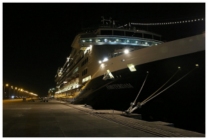 I just wanted to write a little about the fact that we were tied up to a pier at what I would call a “working port.” A few years ago, I got a tour, by bus, of our own Port of San Diego. I learned that there was much more going on than I was aware of. This was true about the place where we docked. There were hundreds of cars that were either coming or going, I could not tell. There were giant spools of what looked like sheet metal. A fellow passenger claimed these were parts for windmills but I doubted it. There was a train that stopped in from of us after one tour when we were on the shuttle retuning to our ship.