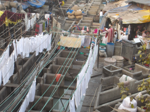 The gray building was quite a contrast to what is called the “dhobi ghat.” This is an area where people have supported themselves for generations by hand washing laundry. Somehow, without the formal technology we are all accustomed to, these people have an efficient system of collecting dirty clothes and returning clean, nicely ironed clothes. It is hard to figure how these people get clothes clean in what appears to be dirty water but they do. I took the obligatory pictures but felt really happy about my laundromat on the Amsterdam.