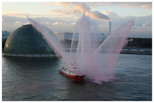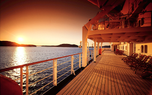 Even though the weather was cold, I opted to take the promenade deck to get to the ‘mid-ship’ elevator. I was delighted and surprised to see an unusual sunrise. The sun was glowing red behind a layer of clouds. I snapped a few pictures but they did not capture the unusual beauty I saw. Interestingly, I had an extended period of time to appreciate the sunset last evening. Mary and I opted to go, for the second time, on a giant Ferris wheel which is located right next to the pier where we were docked in Osaka, Japan. We had enjoyed the 360 degree view during the day and wanted to see how Osaka might light up at night.