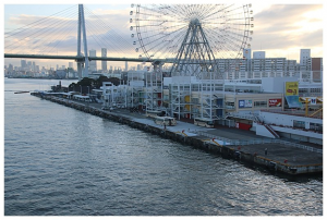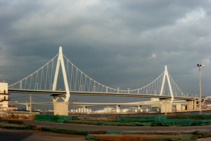 The view from our ship was really amazing to me. Remember the giant Ferris wheel I mentioned? At night it was lighted with changing colors much like a light show. The first evening in Osaka, I was able to sit comfortably aboard ship in the ‘Piano Bar’ enjoying the music while at the same time watching the colors change on the Ferris wheel. This was not my only visual treat! During the day, the traffic on the suspension bridge was reminiscent of the view I had of the 805 and 8 interchange when I worked at 2667 Camino Del Rio in Mission Valley. I really liked the view.
