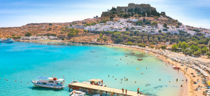 Take this wonderful opportunity to enjoy a leisurely panoramic drive on the island Rhodes from the comfort of your motor coach. On leaving the pier, pass by the city walls of the old medieval Rhodes Town (a UNESCO World Heritage Site), New Market Building, Mandraki ( Photo stop if parking for motorcoach is available ), Aquarium and on to Mount Smith for a view over the town of Rhodes, the castle, the coast of Turkey and the nearby islands (Photo stop). En route to the Lindos area a stop at the St. Paul’s for a panoramic view of the bay and the ancient theatre (photos top). From a promontory, you will view from a distance the ancient Acropolis of Lindos which, according to Homer in The Iliad, was built by the Dorians along with the cities of Kamiros and Lalyssos. These cities exercised considerable nautical power in ancient times. The village of Lindos with its 1,000 inhabitants lies below the Acropolis. Continuing on, you will stop at Kolymbia Beach (Limanaki) by the sea. Like the Greeks, you will sip on a coffee or refreshments at a local seafront restaurant. Afterwards, you will return to Rhodes Town and the pier, passing through the Faliraki and Kalithea areas along the way.