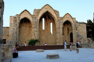 At many of the ports we have visited, the location of the center of the town or city is far enough away that a shuttle is required. This was not so in Rhodes. Our ship was a remarkably short walk from a walled “Old Town” section of Rhodes. This was more like the castle at Disneyland than the “Old Town” we have in San Diego. The tour bus got us back to the ship in time for a leisurely lunch at the Lido. We were then ready for our afternoon excursion in the walled section of Rhodes.
