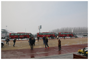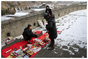 Our trip to the Great Wall was supposed to last 10 hours. The actual travel time to the wall was projected to be 31/2 hours. This would be broken up by bathroom stops and lunch. Due to the snow, everything took longer. Chinese officials who manage customs and immigration took longer than expected. Our disembarkation from the ship was delayed. Once we were finally on board our buses, there was yet another delay due to clearing the roads. Imagine you are sitting on a bus which is stopped just where Camino Del Rio becomes Interstate 8. There are no vehicles on the freeway and only other buses stopped around you. That’s how things were for about a half an hour and then, without any explanation from our tour guide, we were finally on our way.